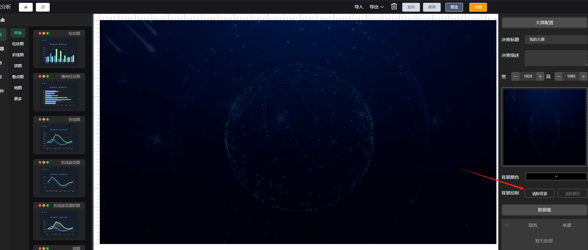 决策分析大屏,打开后会自带背景,我们也可自定义背景