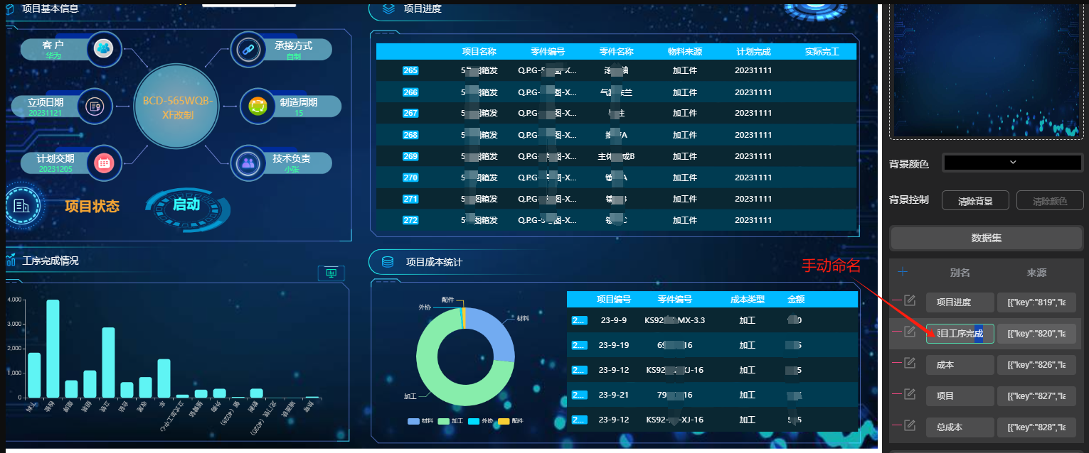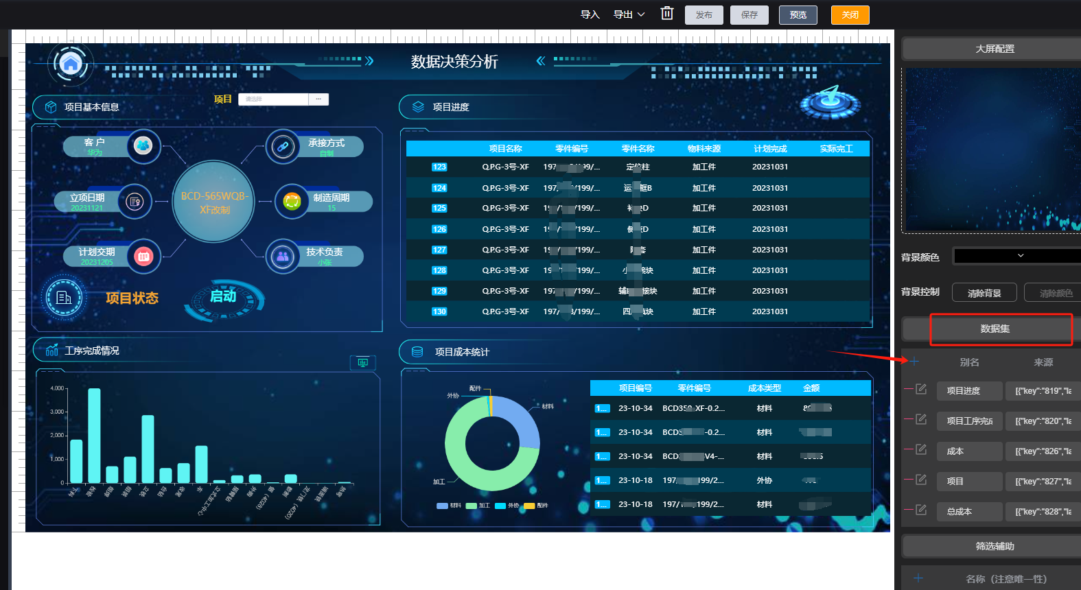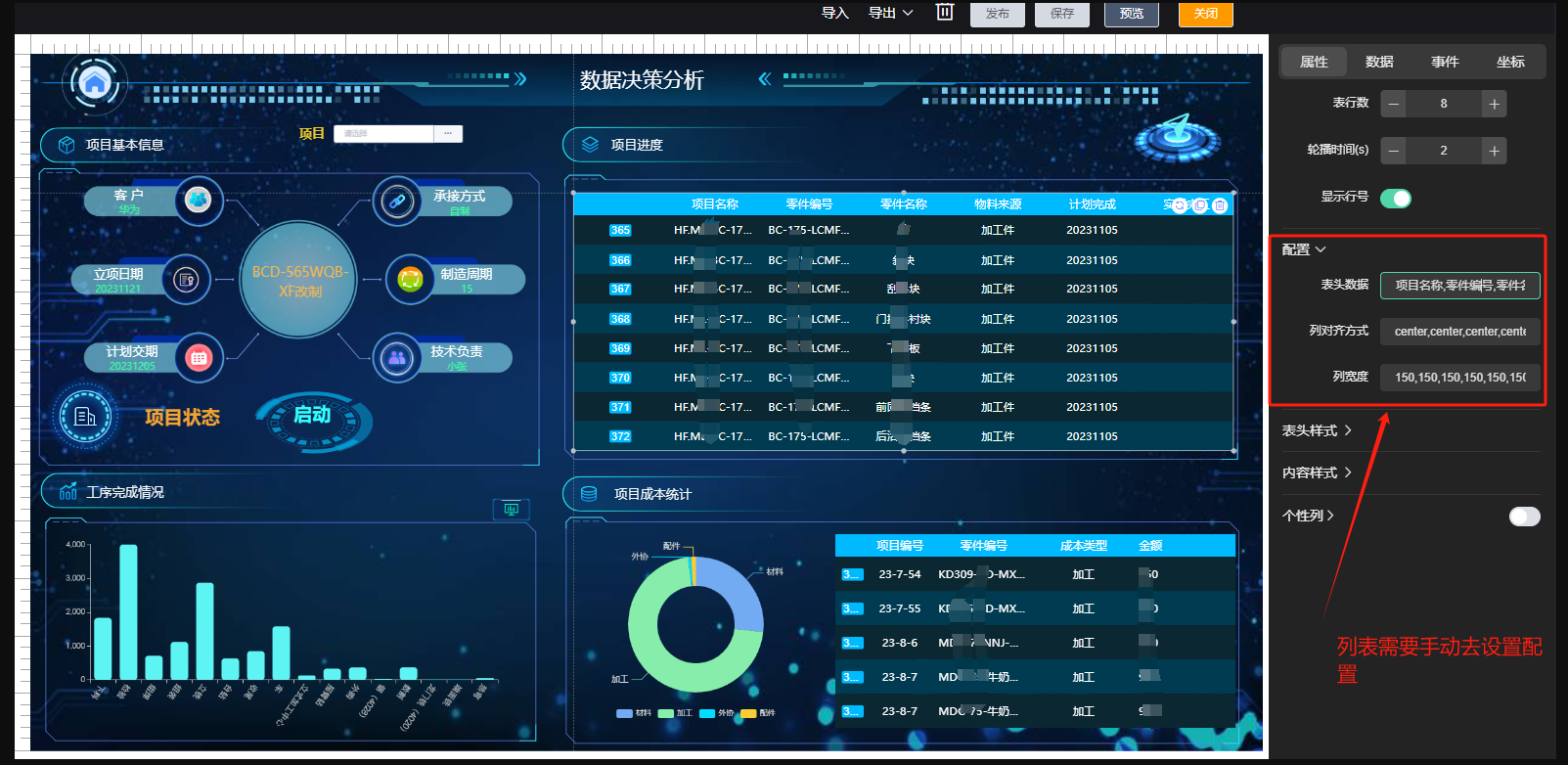 - 场景-前台表和自定义报表标识组合展示出入库情况