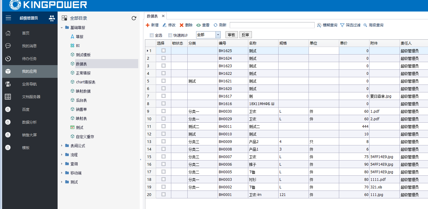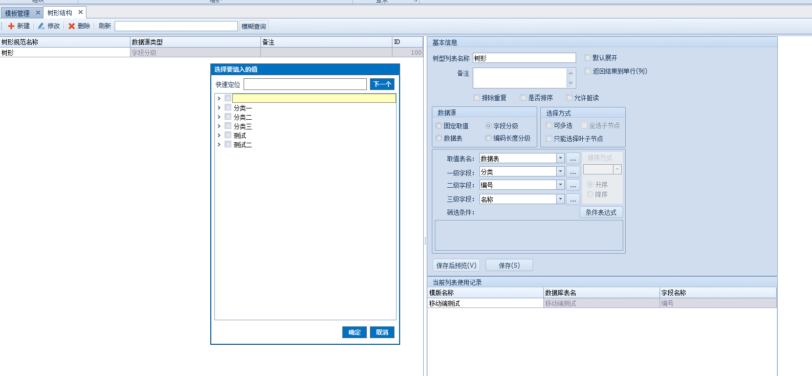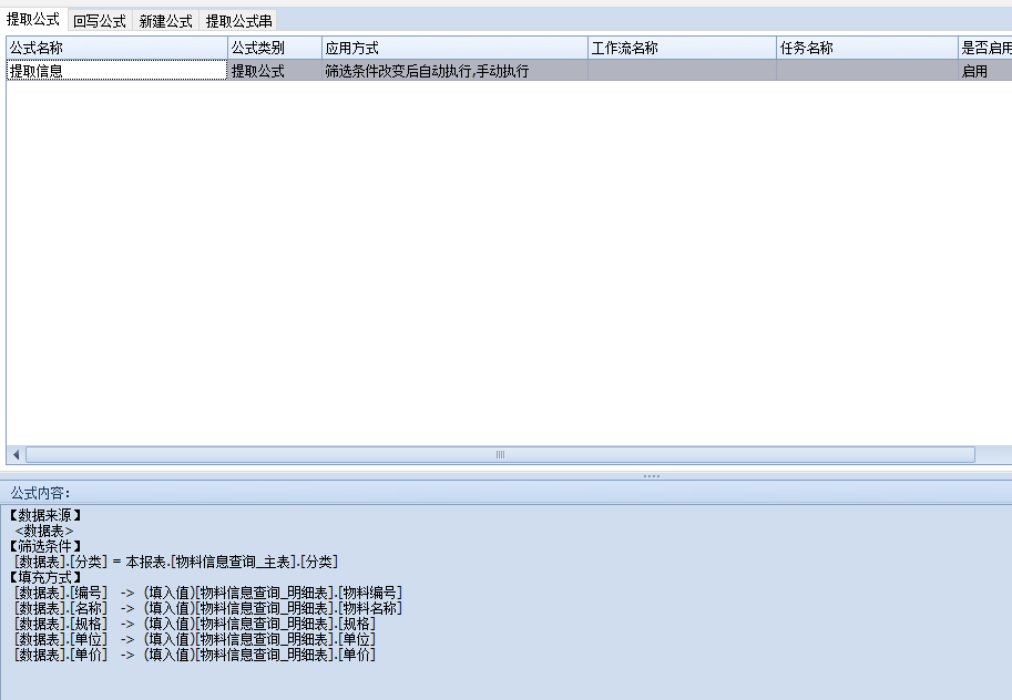 上一页 此功能在版本6.7以后才能使用一般用于层级结构性的数据查询,例如BOM等信息,这里以物料信息分类查询为例1.创建一个树形结构变,数据来源于物料信息,如下2.创建好树形结构后,建立查询表如下3.建立表间公式4.内嵌树形结构,并联动数据查询设置完成后保存,效果如下 下一页作者:harry 创建时间:2024-08-14 13:44最后编辑:test 更新时间:2025-10-14 15:38
