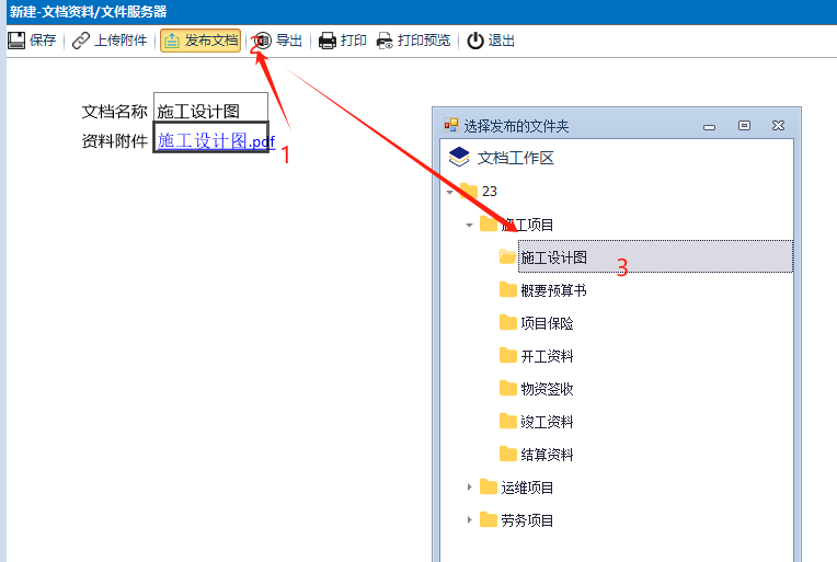 (2)业务表单附件数据发布上传,即将已存在得附件发布存储到文件服务器中:
