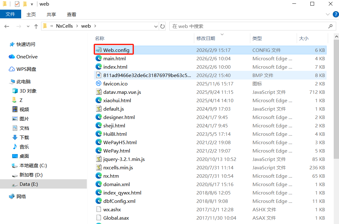 在NxCellsWeb安装目录下找到Web.config文件(路径:NxCells/web/Web.config)